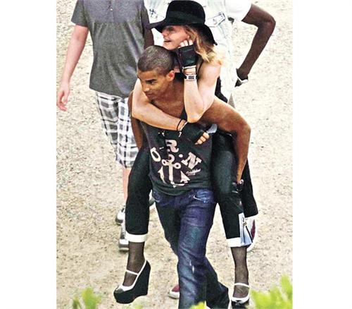 乐坛天后麦当娜(Madonna)现身在意大利举行世界巡唱“MDNA World Tour”,虽然她以露点、露股及大玩血腥暴力博出位,备受外界谴责,但她一于少理,沐浴在爱河中的娜姐前日与24岁小男友Brahim Zaibat畅游佛罗伦斯,走到累更获男友扮人肉轿夫背着走,难怪面露甜到漏的表情啦!