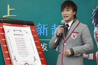 方力申昨日宣布签约华谊兄弟,新东家华谊兄弟特意举行名为“踏浪北上”的“新生入学”仪式,欢迎方力申风光“入学”。