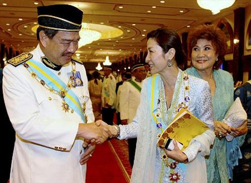马来西亚国际巨星杨紫琼继2001年获封赐拿督勋衔,成为马国第一位受封拿督的华裔女艺人后,今年再获霹雳州苏丹阿兹兰莎册封拿督斯里巴杜卡封衔,再度成为首个拥有“拿督斯里”衔头的马国华裔女艺人!