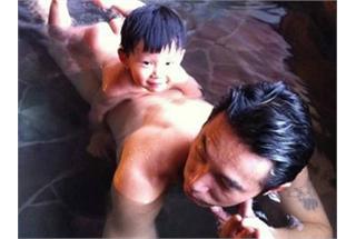陶晶莹晒老公儿子全裸泡汤露臀照